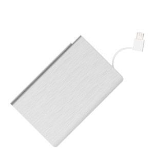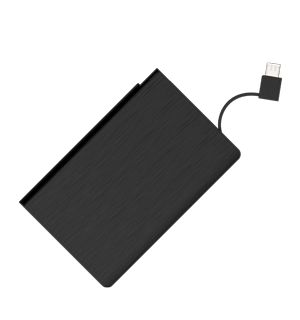 Beide kanten van de Volt Powerbank kunnen met zeefdruk of lasergravering gepersonaliseerd worden met een logo, slogan, website en meer. De Volt, bestaande uit een gekoppelde micro-USB kabel, een Lightning adapter en een USB-C adapter, is de perfecte partner voor de smartphone of tablet van je klanten en werknemers.